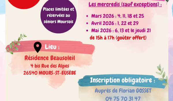 La résidence Beausoleil organise en faveur des Séniors Moursois des Ateliers de rigolo thérapie et de méditation sonore animés par Mme DEPRUGNEY, sophrologue.