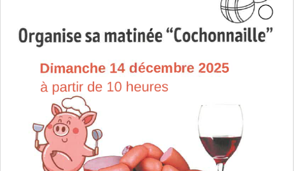 L'association "Pétanque Moursoise" organise sa matinée "cochonnailles" le dimanche 14 décembre 2025, à partir de 10h00, au complexe des Guinches